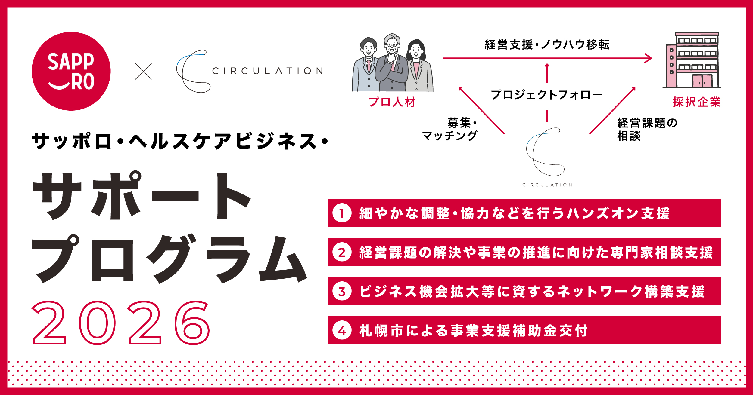 2026「サッポロ・ヘルスケアビジネス・サポートプログラム2026」支援事業を公募しています! READ04/22 (Wed)