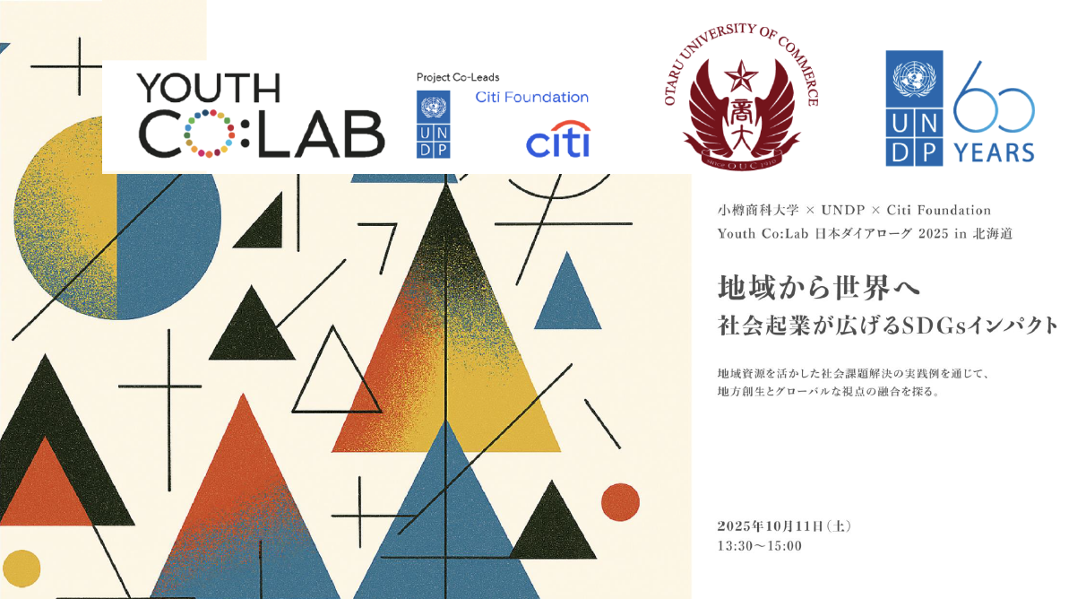 10月11日(土)、「Youth Co:Lab 日本ダイアローグ2025 in 北海道」を、小樽商科大学、UNDP、シティ・ファウンデーション共催にて、札幌よりハイブリッド形式で開催します。