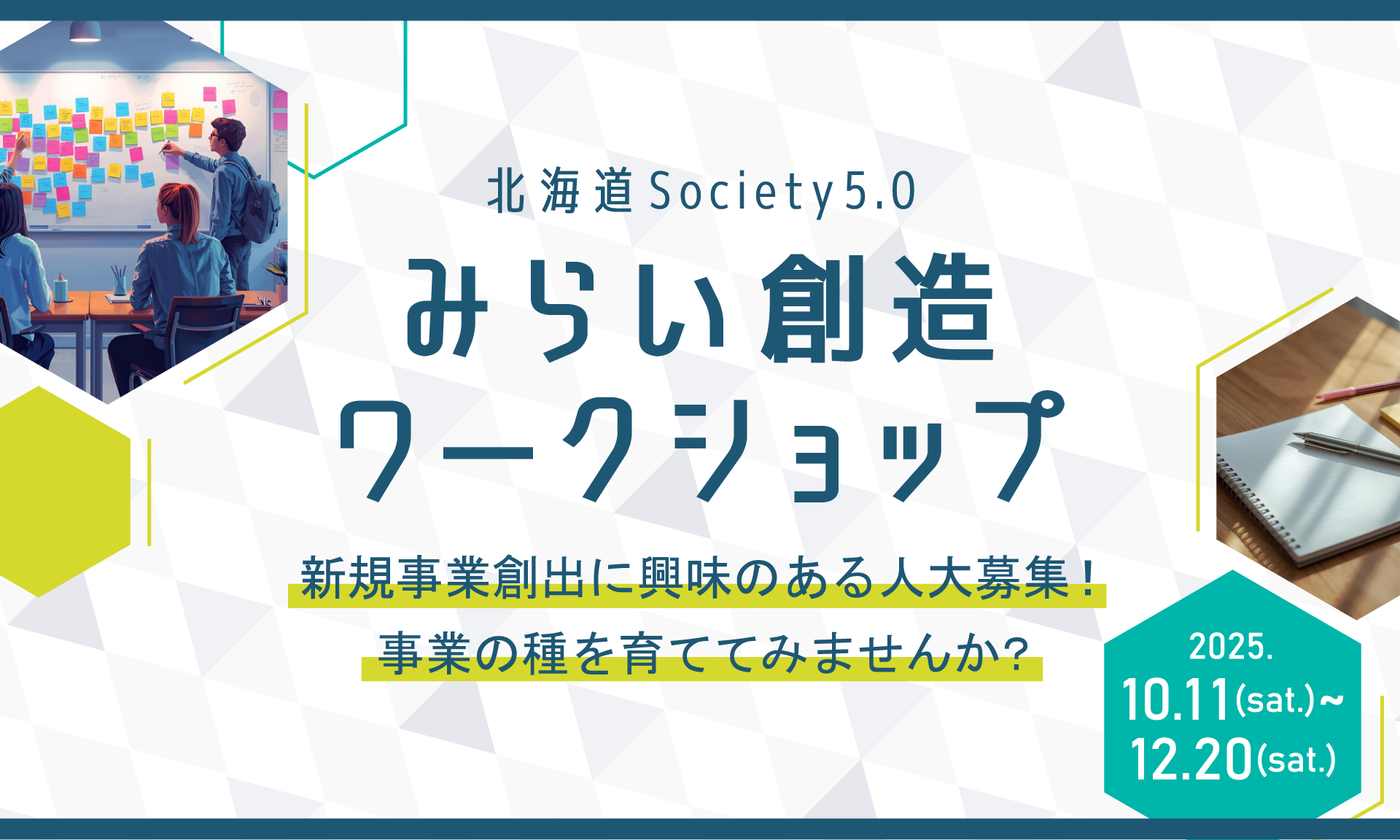 アイデアソンからビジネスモデルの構築、最終的に事業計画書をリアルに作成するプログラムである「北海道Society5.0みらい創造ワークショップ」を開催します!
