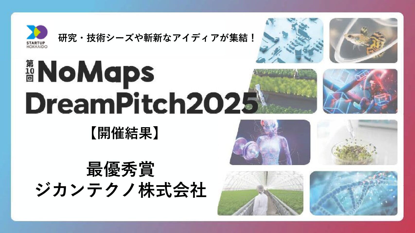 研究・技術シーズや斬新なアイディアを基に事業化を目指す起業家・研究者・スタートアップによるビジネスプランコンテスト「第10回NoMaps Dream Pitch 2025」を9月10日(水)に開催しました。